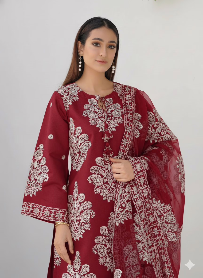 Number of Pieces:Â 3 Piece – Top + Bottom + Dupatta