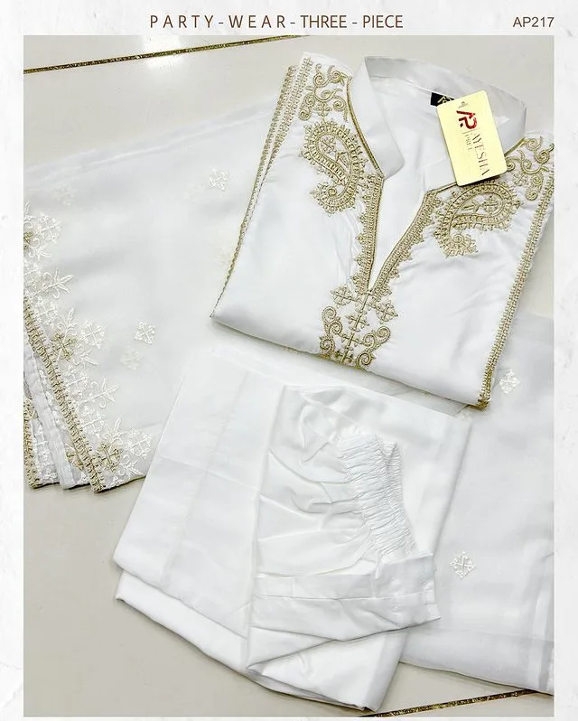 – Comes with a straight plain trouser and an embroidered bamber chiffon dupatta.
